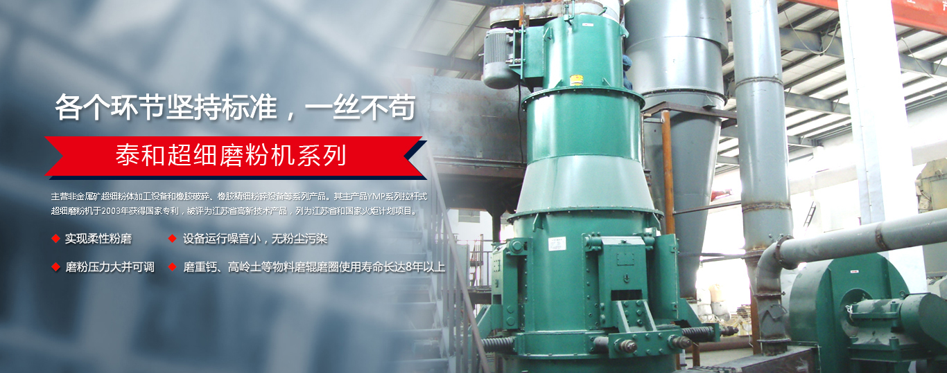 宜興市泰和機械有限公司是在國家高新技術開發(fā)區(qū)注冊的一家科技民營企業(yè)。主營非金屬礦超細粉體加工設備和橡膠破碎、橡膠精細粉碎設備等系列產品。其主產品YMP系列拉桿式超細磨粉機于2003年獲